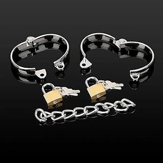Jinqian Metall handschellen Edelstahl Handfesseln Fußfesseln Geschirr Sex Bondage Set Sexy Fesselset mit Handschellen Fußfesseln Erotik SM Sexspielzeug (Frau- Handschellen(Mit Ketten))