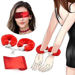 2 stk BDSM Bondage Set,Metall-Handschellen mit roten Plüsch und rote Satin-Augenmaske,Liebeshandschellen inkl. zwei Schlüssel Augenbinde SM Fesseln Geschenke Perfekt für Frauen Männer Cosplay (Rot)