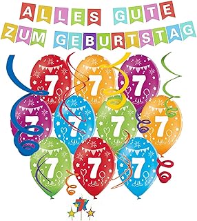 Libetui 7.Geburtstag Deko-Set 'Stern' Happy Birthday Bunte Partykette Girlande Spirale Luftballons und Geburtstags-Kerzen für 7. Geburtstag