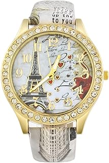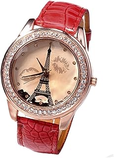 Demarkt Damen Eiffelturm Strass Armbanduhr Quartz Analog,Mädchen Eiffelturm Leder Armbanduhr Analog Quartz Armbanduhr