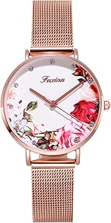 Damen Uhren Minimalistisch Analog Quarz Armbanduhren Mesh Band Blume Dial Mode Mädchen Armbanduhr