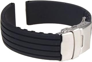 Schwarz Silikonkautschuk Uhrenarmbaender Armband Band Faltschliesse Wasserdicht 22mm