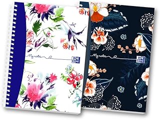 Oxford Floral Notizbuch, A5, Hardcover, Spiralbindung, liniert, 140 Seiten, Scribzee-fähig, 3 Stück