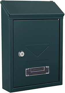 Rottner Briefkasten Udine Stahlbriefkasten Grün Mailbox, klein, Pulverbeschichtet, Namensschild, Sichtfenster